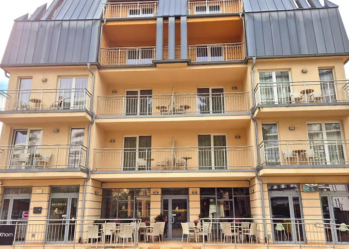 Hotel znajduje się 1 km od centrum Międzyzdrojów i 65 km od lotniska Szczecin-Goleniów im. NSZZ „Solidarność”. Wieżyczka z barometrem jest 7 minut drogi stąd.